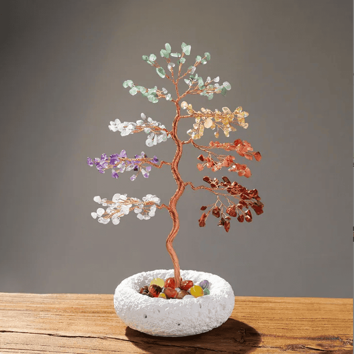 愛禮物的七彩能量水晶樹,使用了七種顏色的水晶結合成一顆水晶樹,紅色象徵活力與愛情、黃色象徵財富、綠色代表著人際關係的和諧、白色能夠洗淨一切負能量,無論是作為空間擺設的裝飾,或是送禮祝福,為朋友提供正向的磁場能量,都是不錯的選擇,是十分推薦送禮的開運小物。